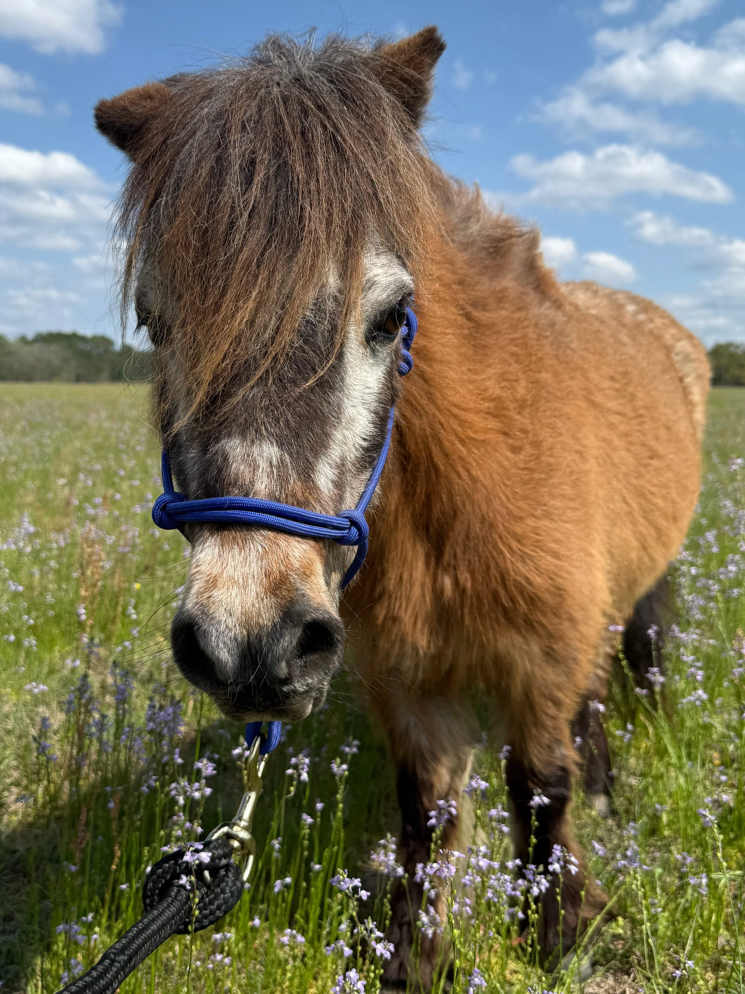 Peaches may be small in size, but she’s full of personality! This former mama came to us from a local barn where she lovingly raised several foals. Now retired from motherhood, Peaches brings her sweet (and sometimes sassy!) spirit to Blue Sky Acres.